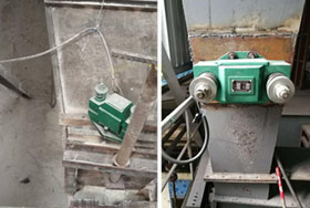 如單臺(tái)效果不太好,可選兩臺(tái)或多臺(tái)組裝,或直接將倉(cāng)壁振動(dòng)器也稱(chēng)倉(cāng)壁振打器與料倉(cāng)內(nèi)活化器連接,以提高使用效果,安裝位置一般位于料倉(cāng)錐體高度1/4或小于1/4處。如安裝兩臺(tái)以上,可在對(duì)稱(chēng)面的不同高度安裝,對(duì)于木制或混凝土料倉(cāng),可在倉(cāng)壁加裝振動(dòng)板以傳遞振動(dòng)力,活化物料。