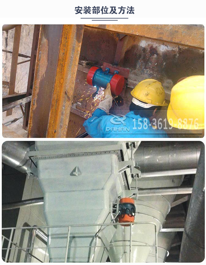 倉壁振動器可用螺栓把底座固定于料倉底部的倉壁上,也可直接把底座焊接在料倉上,其固定(焊接)要牢靠,與倉壁連接的剛度越好,其使用效果就越好。