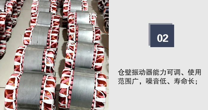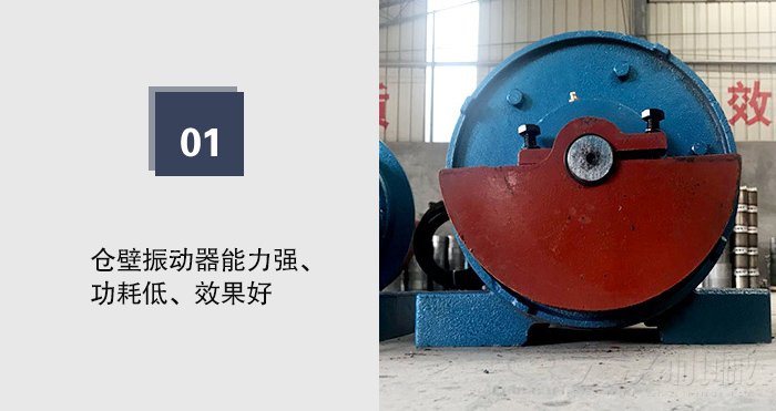 2、倉壁振動器能力可調、使用范圍廣,噪音低、壽命長;